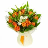 Альстромерии, окруженные розами – это шикарное нежное сочетание, которому обрадуется любая женщина. Букет выполнен в нежных тонах, любимых дамами. Альстромерии помогут сделать подарок ненавязчивым и покажут хорошее отношение, а розы – не двузначный намек на теплые и нежные чувства, букет подойдет для извинений или для напоминания о любви.